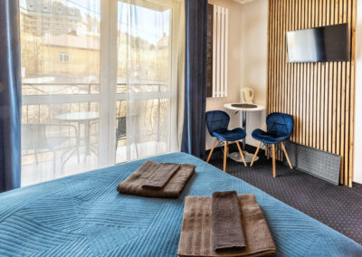 Ten pokój dwuosobowy dysponuje łazienką oraz balkonem z widokiem na wewnętrzny dziedziniec. Wyposażenie obejmuje telewizor z płaskim ekranem i dostępem do kanałów kablowych. W tej opcji zakwaterowania zapewniono 1 łóżko.